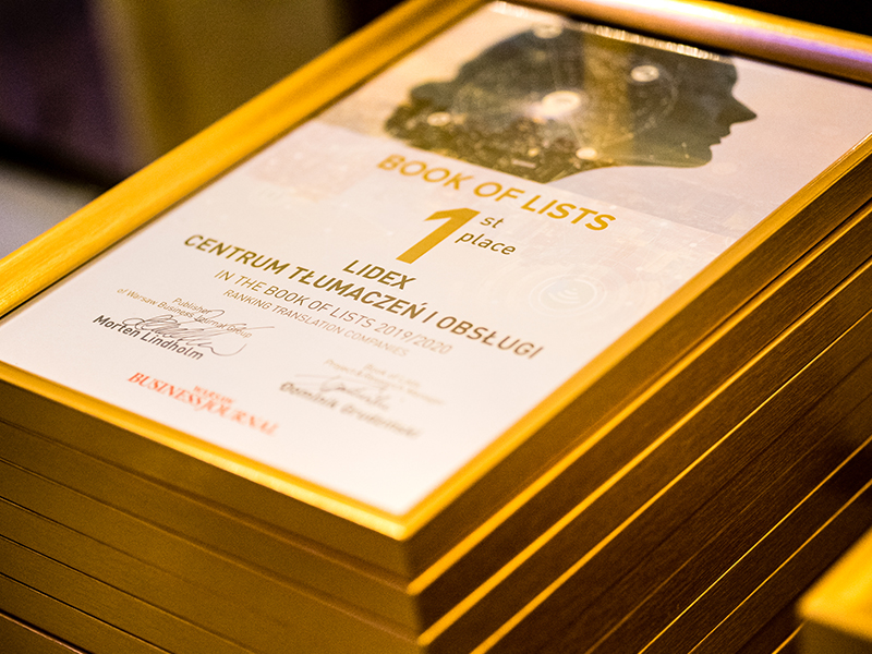 Z wielką radością informujemy, że po raz kolejny Lidex zajął 1. miejsce w rankingu polskich firm tłumaczeniowych BOOK OF LISTS (2019/2020).